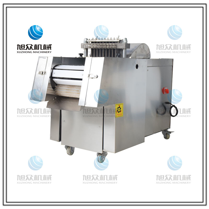 本机性价比高,模拟以手工切断,切块的原理采用“变速机构,自动送料”的结构研制而成。无损耗,采用特殊刀具刀块,自动加厚履带输送,避免了切块的危险性,使用安全性较高,切断过程中不产生废料,很大程度的保护了您的利益,节省人工,一机可抵多人工作,每小时可剁切600公斤,大大提高生产效率。广泛用于大中小型食品加工厂、集体食堂、屠宰场、肉联加工厂、超市等。适用于鸡肉、鸭肉、鱼,中小型动物骨头、冷冻肉、鲜肉、冻鸡、鸡腿等带骨肉类,可根据需要剁块、段、条等,大小可调。