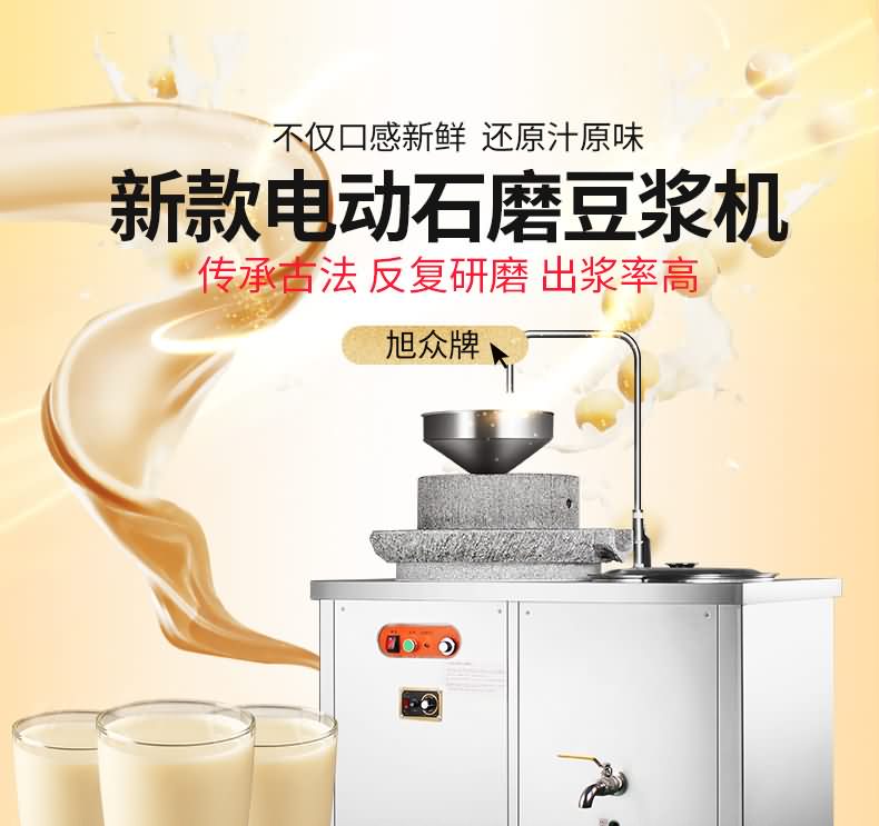 旭众牌XZ-350电动石磨豆浆机、石磨豆腐机,采用古老石磨的原理,来制作现磨豆浆和豆腐。该机操作简单,方便快捷,是传统制作豆腐技术和现在科技的结合,实现豆浆制作的新突破,让人轻松享受到纯正顺滑的豆浆。石磨豆浆机、豆腐机,广泛适用于饮品店、茶餐厅、面包店、宾馆酒楼和单位食堂等使用。
