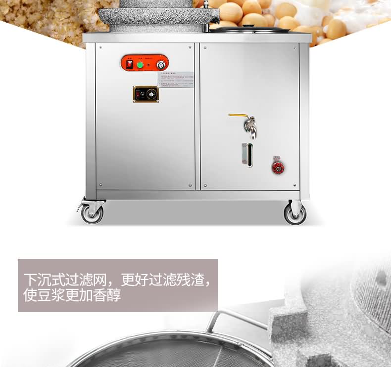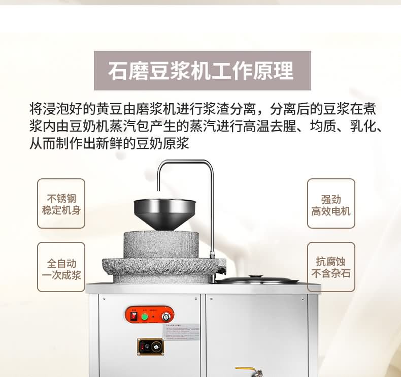 1、石磨使用寿命长,电机带动,控制方便,磨浆速度快,过滤采用下沉式滤网,易清洗;