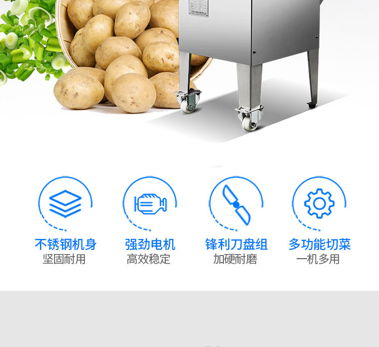 3、切菜效率高,节省人工投入,双变频调速控制,操作简单、方便、安全。