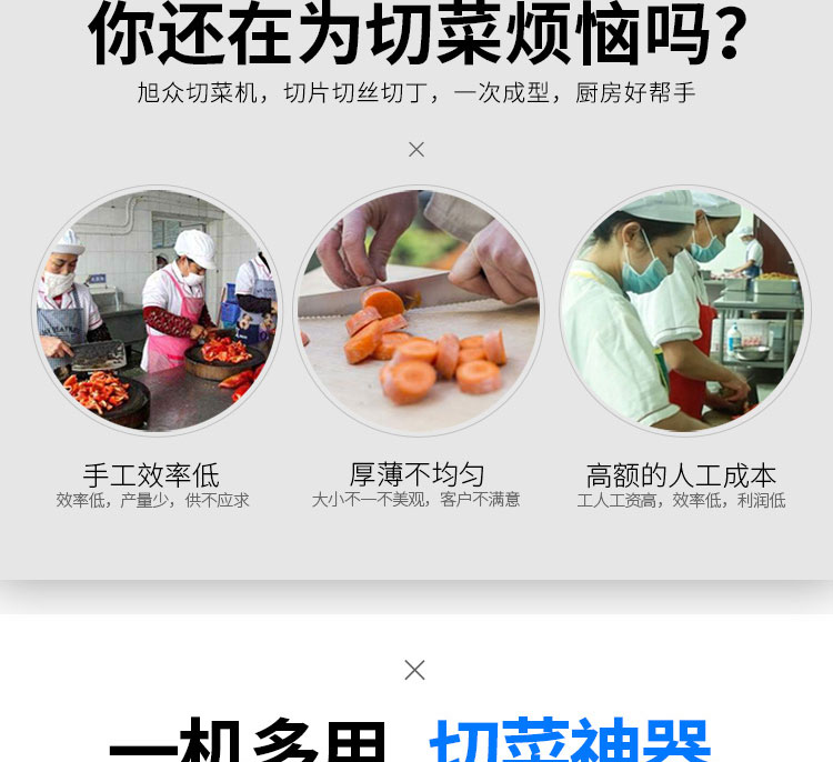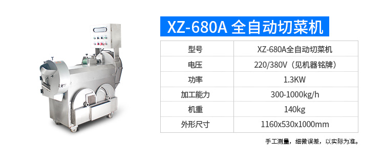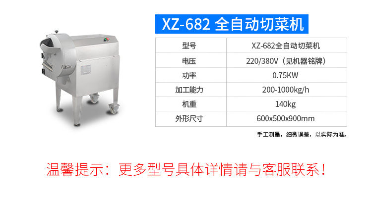 XZ-681多功能切菜机,本设备可切叶菜可切片、丝、段等,叶菜类,切割尺寸: 1 - 60mm 可以调整,适用客户群:食品厂,净菜加工;学生营养餐,餐饮连锁,中央厨房,企业食堂等。