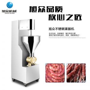 旭众牌SZ-200灌肠机使用敞开式不锈钢料斗,适用于连续添加物料;与灌装手接触部件全部采用优质不锈钢制作以防生锈;该机自动化程度高,技术先进、性能稳定、操作简便、工作效率高,具有不破坏物料成份,保质、保鲜等特点。