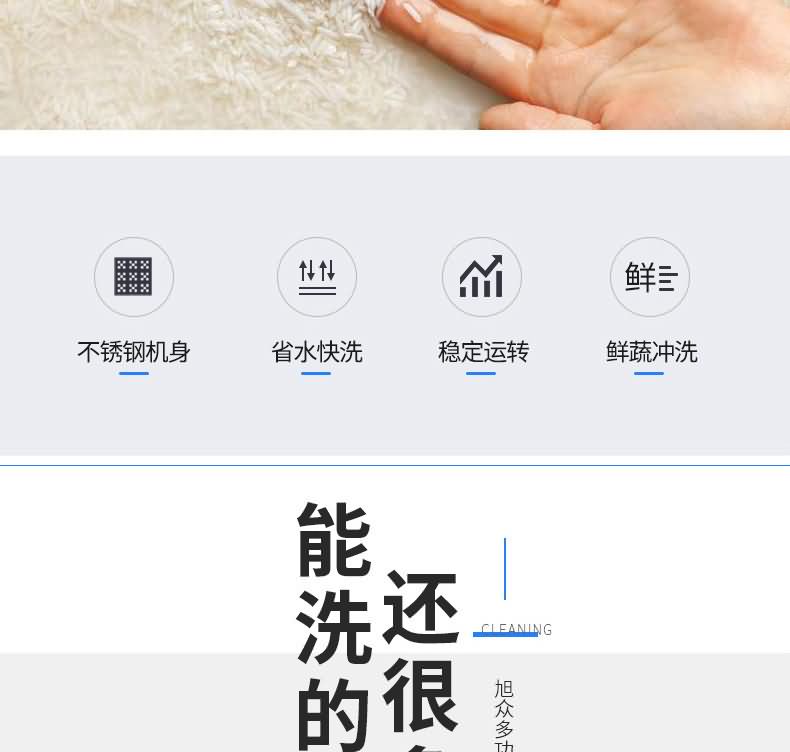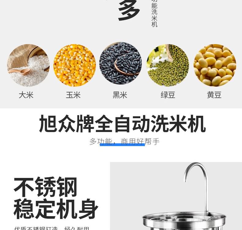 适用于大米、小麦、玉米、豆类等颗粒粮食淘洗。