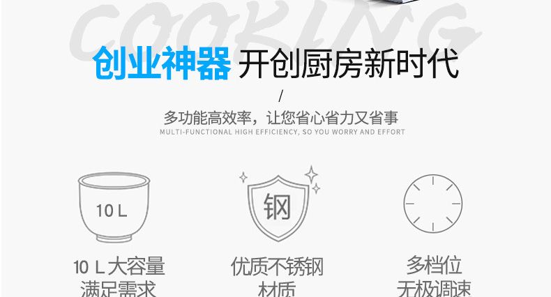该机外形美观、操作方便、工作效率高。既适合于宾馆、酒楼、餐馆、食品加工厂及单位食堂制作食品,也可供制药、化工原料等厂矿单位作调剂原料之用。