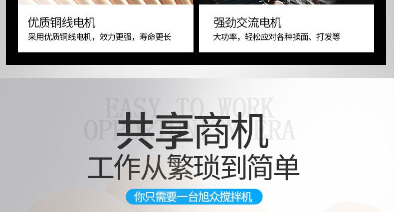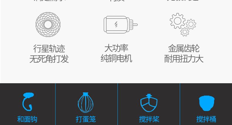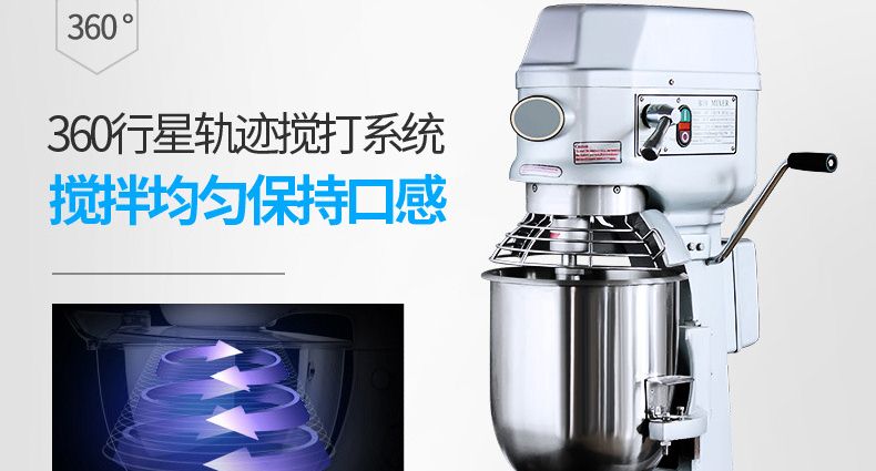旭众牌新款A系列食品搅拌机运用行星运动原理,搅拌器在料桶内做行星运动,从而使食品充分混合,具有和面、搅和碎状。粉状及液状食品等多种功能,机器工作平稳,设有防护罩,安全可靠,设有多级转速,并配有多种搅拌器,用户可按不同要求选择适当的速度和搅拌器,以实现和面、拌馅、打蛋等功能。机内凡接触食物的零部件均采用不锈钢制造或经特殊表面处理。符合食品卫生标准。