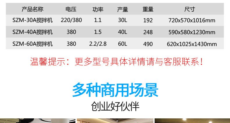 型号 | SZM-10A搅拌机 | SZM-20A搅拌机 | SZM-30A搅拌机 | SZM-40A搅拌机 | SZM-60A搅拌机 |