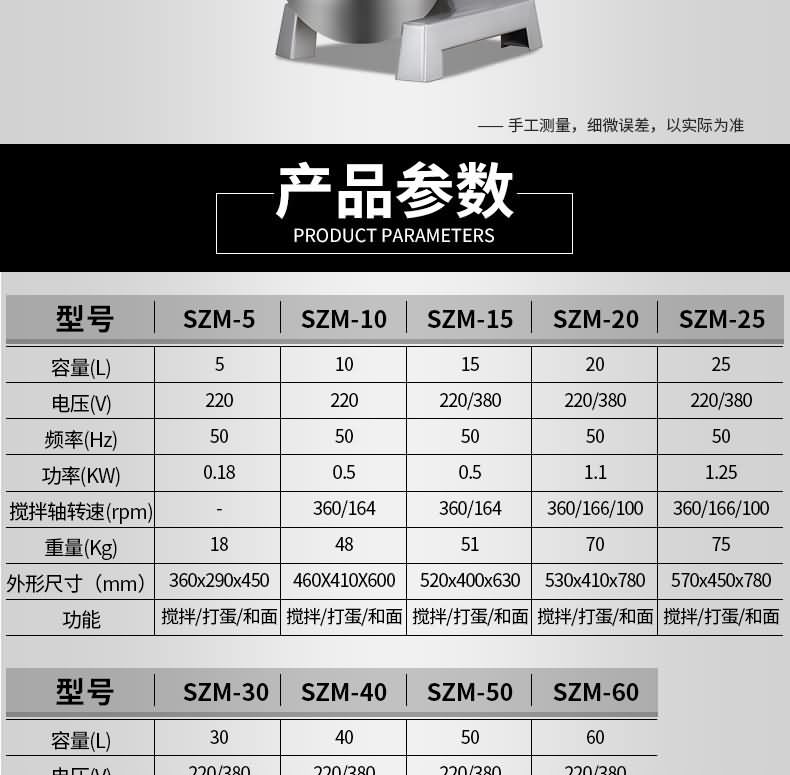 型号 | SZM-5搅拌机 | SZM-10搅拌机 | SZM-15搅拌机 | SZM-20搅拌机 | SZM-25搅拌机 |