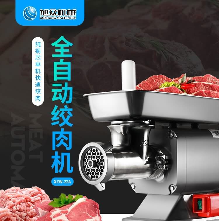 XZW-12A/22A绞肉机是引进台湾先进技术,研制生产的新型多用途产品。该产品采用不锈钢外壳、符合卫生要求,全封闭式齿轮传动,装卸简便易清洗,工作安全可靠,生产能力强,并可实现正反转。造型美观大方,适合任何宾馆、饭店、肉制品加工。