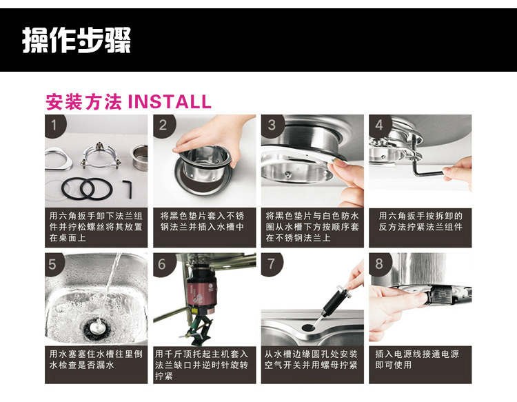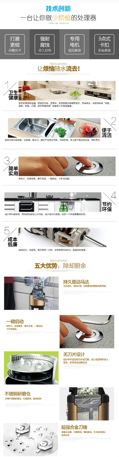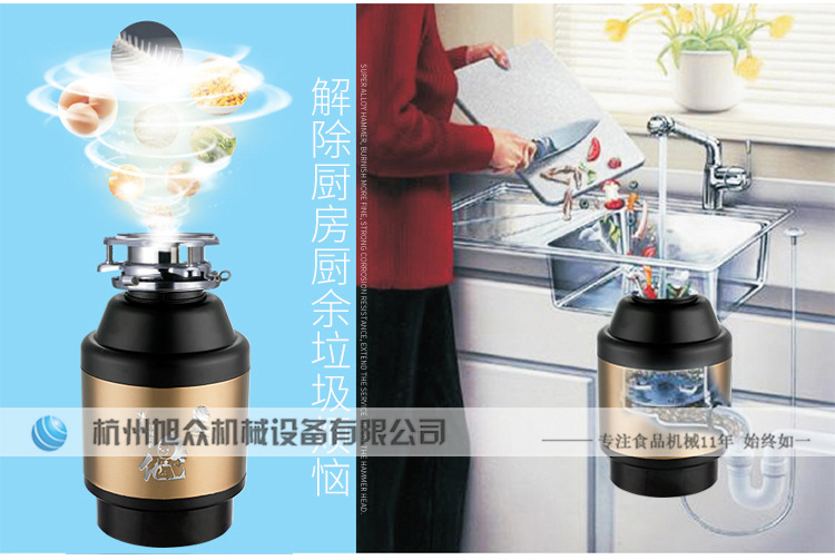 ACLQ56-厨房垃圾处理器,该机器是靠内部结构、零件组合达到处理垃圾的效果,通过碾、压、挤、磨等系统的处理,在十几秒内安全将食物垃圾处理成小于3毫米的颗粒,随着水流排入下水道,使用十分安全。