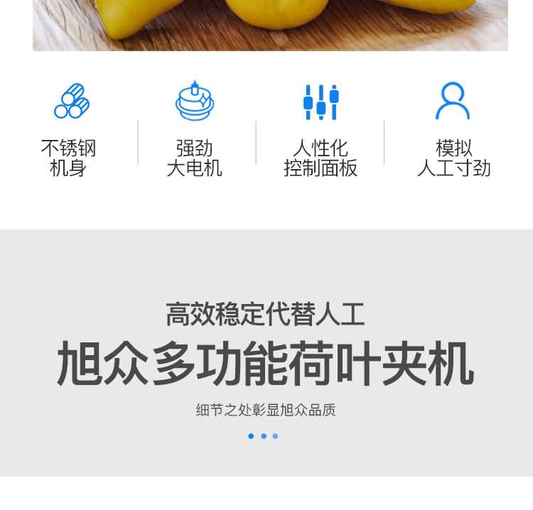 “荷叶夹”顾名思义便是其形状似荷叶,蒸制后的成品小巧可爱,摆满盘中不禁令人联想到成片荷叶随风摇摆并不时传来阵阵荷香的美景而顿生凉意,非常适合在酷暑中作为点心。荷叶夹机,是一种把拌好的面团放在机器,加工制作荷叶夹的食品机械,可生产各种荷叶夹、蝴蝶夹、肉夹馍、也可生产刀切馒头。