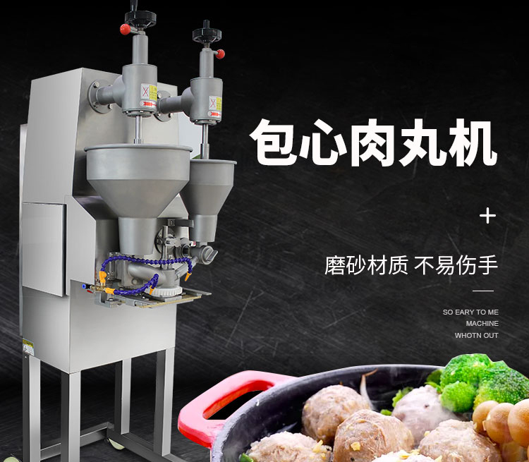XZ-609包心肉丸机为包馅肉制品成丸设备,能生产出各种大小尺寸的包馅鱼丸、撒尿牛丸、猪肉丸、牛肉丸、及包馅贡丸等,并可做不包馅的各类丸子。该设备具有速度快、卫生方便、易拆洗等特点,可代替几十个人手工生产,可为厂家节省人员的投入、提高生产速度。