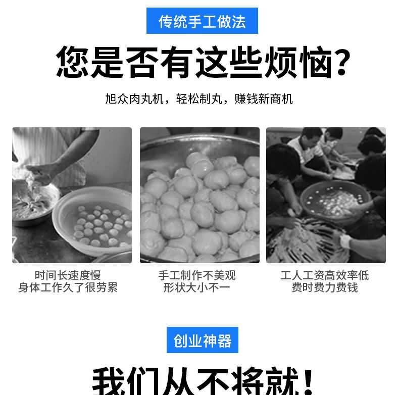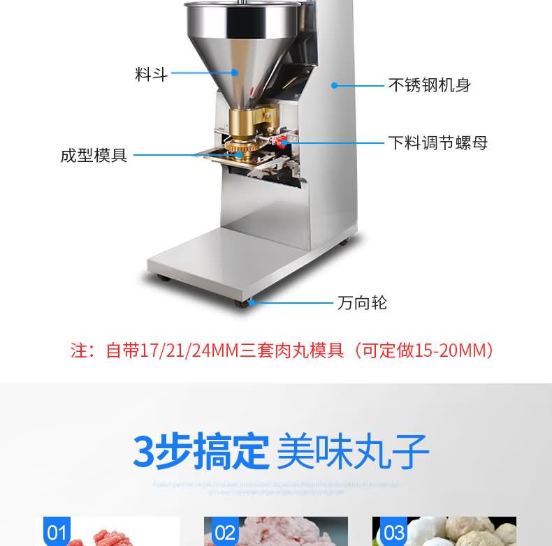XZ-605肉丸成型机为肉制品成丸设备,能生产出大小尺寸七个规格的肉丸及花生贡丸,并可按要求尺寸订做8-30mm的规格,具有速度快、卫生方便、易拆洗等特点,可代替八个人手工生产,可为厂家节省人员的投入、提高生产速度。