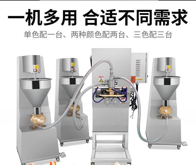 XZ-709多功能成型机新一代的多功能淡水丸机为鱼肉制品成型设备,配合泵脯(供料机)使用,能生产出单色、包心及多色各种花式的品种,单色配一台、两种颜色配两台、三色配三台。