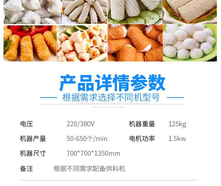 采用双电机双变频设计,不单只是速度可调,而且产品上的条纹旋度也可调,使得做出的产品更多样化,操作起来更方便。特别配备滚切刀,能生产出平口和圆口的淡水丸,具有一机多用的特点。