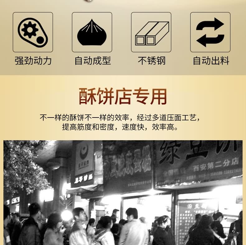 ♦生产速度快,效率高,生产流程流畅,各环节都辅以电控设备控制,不会出现堵面,破酥等现象;