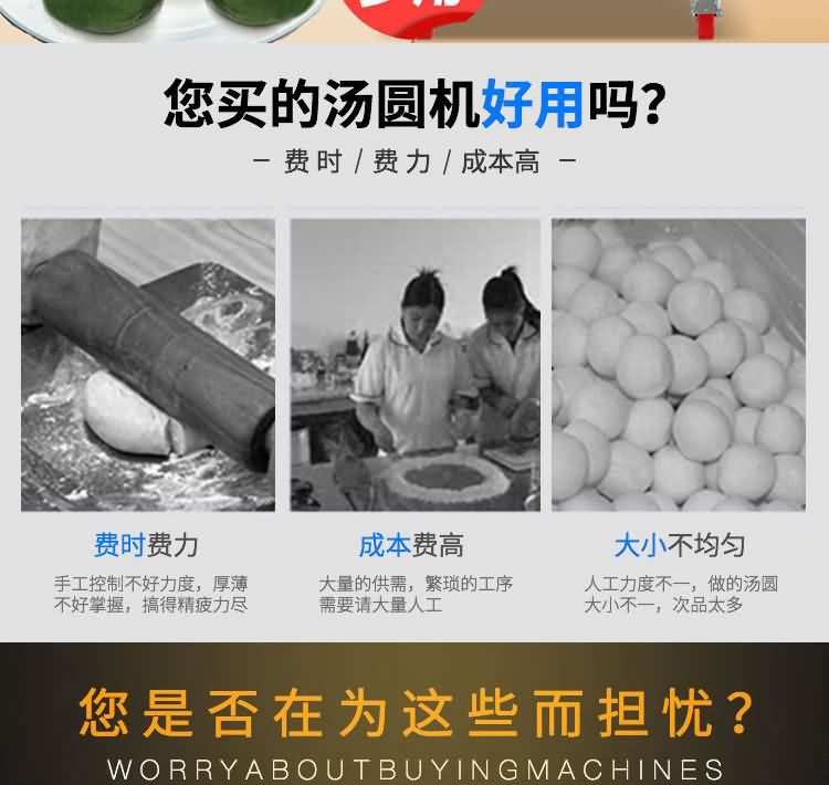 ◆工作效率高,相当于20-30个工人同时手工制作汤圆,真正的低投入、高收效,省钱省工。