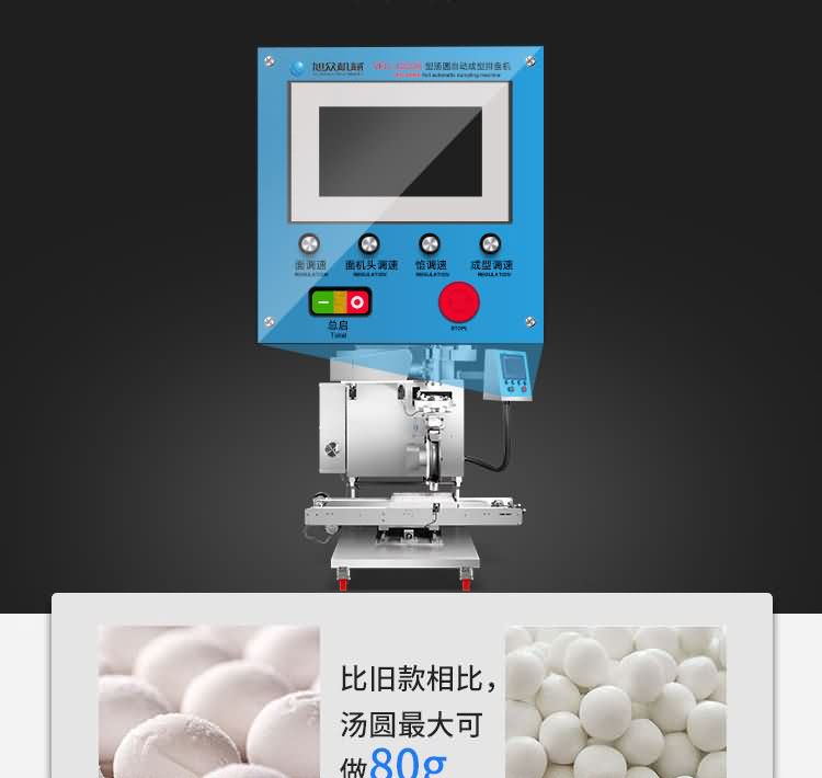 ◆触摸屏自动控制搓圆摆盘一体成型技术,使得制品外形美观,大小均匀,表面光亮细腻、口感柔滑,弹韧性佳;
