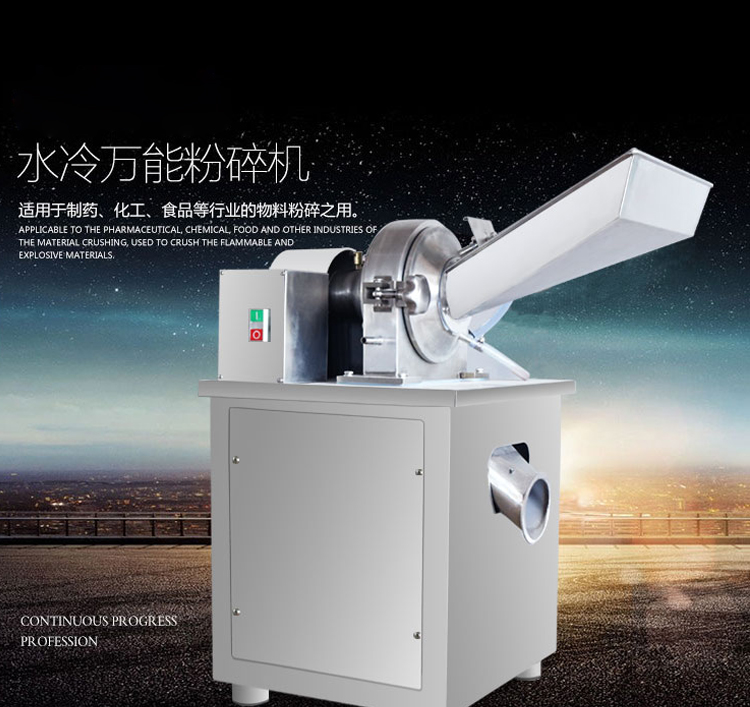 1、水冷万能粉碎机利用锤片的运动,使被粉碎物料在粉碎腔里面,被锤片高速碰撞、敲击、切割和摩擦,以及物料之间的碰撞和摩擦,从而获得粉碎,粉碎后的物料通过筛网落进粉碎腔下方的集料桶内或者布袋内。一般采用布袋装料,粉尘留在布袋里面,而空气以及少量极细的粉尘通过布袋的缝隙,被排出布袋外面。