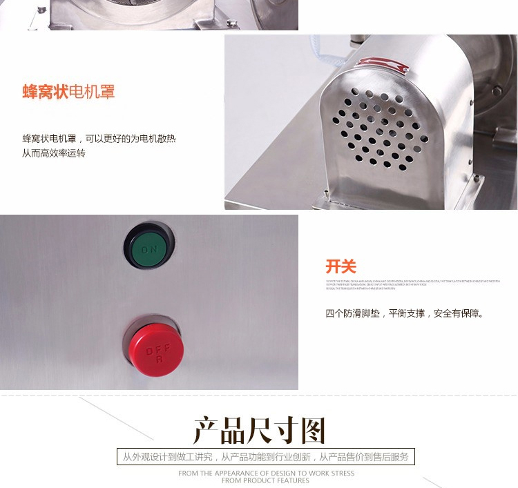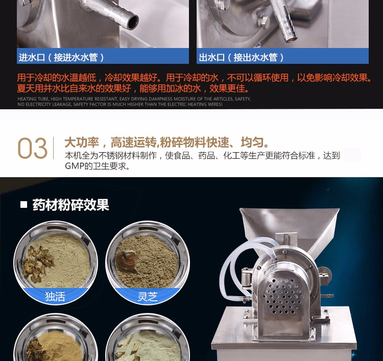 万能粉碎机主要适用于制药、化工、食品等行业的物料粉碎。禁用于粉碎易燃易爆品。禁止用于金属物品的粉碎。不适用于大块物料的粉碎。不适用于粉碎含水量太高、含油量太高的物料,因为粉碎后出水或者出油,形成酱状物,会堵塞筛网,影响出料,造成出料不畅,甚至卡死、闷机现象。本机不适用粉碎所有粘性物料,也不适合发热后变软和变粘的物料。