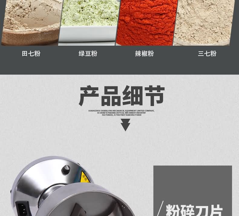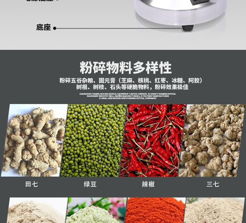 1、功能:可粉碎各种药物物品等,成品为粉末。