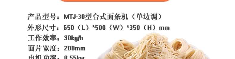 | 型号 | MTJ-30型台式面条机(单边调) |