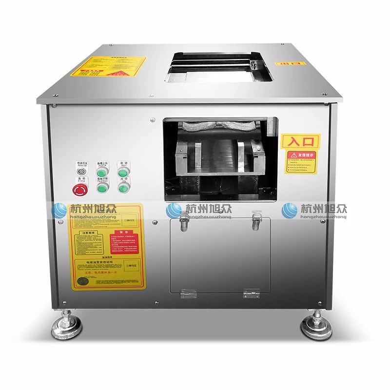 大型切鱼片机(自动进料)采用多组刀片同时斜切的原理,完善了单刀切片效率慢和切片不均匀的难题,真正意义上实现了多片斜切。鱼片机专业用于鲜品、鸡胸、鸭胸、里脊肉片、牛肉、羊肉、各种鱼柳,把需要处理的样品放在刀梳上,机器可一次性自动切割成片。每小时100Kg-150kg,日产量可达1吨以上。但是!!!此款设备最薄只能定做3mm,如要定做1.8-3mm以内范围的规格另择其它鱼片设备!