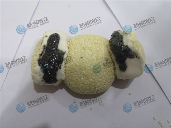 那么旭众的麻球机究竟是怎样的呢?那就是我们的多功能包馅机!昨日客户将在自己食品厂和好的面团、袋装的黑芝麻馅料及裹在外层的白芝麻带来了现场,因为他们目前还是人工包芝麻成型,在人工投入方面非常的大,但是还是缺人,可以想象他们每日的生产量是有多大,于是他们带着直接做好物料来到了现场,只要能看到包馅机做出他们想要的效果便可,那么来看看XZ-99多功能包馅机做出来的麻球是怎样的: