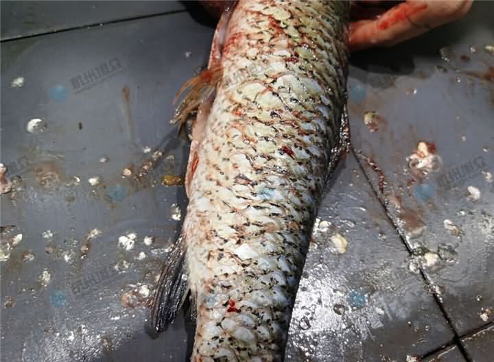 全自动杀鱼机是什么鱼都可以杀吗?不是的哦!请听我细细道来,旭众全自动杀鱼机分为开肚去鳞和开背去鳞,常规型号2-8斤范围,小鱼型号0.8-2斤范围,有特殊要求可以定制。常规2-8斤款,杀草鱼这类修长型的可以达到这个大小宰杀范围,杀花鲢(大头鱼),最大只能杀到5.5斤,且鱼腮盖边缘会有不同程度的刮伤,杀花鲢要杀到8斤左右的,需要加5000元定制,因花鲢鱼鱼腮盖面积大,边缘薄,无论是常规款还是定制款,对于5.5斤以上的,鱼腮盖边缘都会有不同程度的刮伤,小于5.5斤的,刮伤的情况要好很多。黑鱼不建议推荐开背,黑鱼鱼身表面有一层很滑的粘液,去麟率较低,鱼身不容易固定,易造成刀口开偏,开肚没问题。