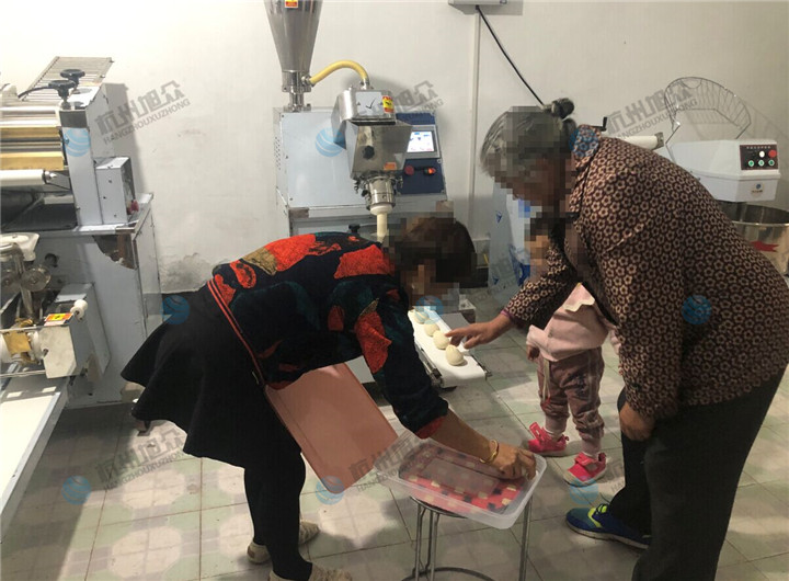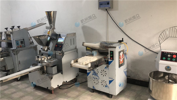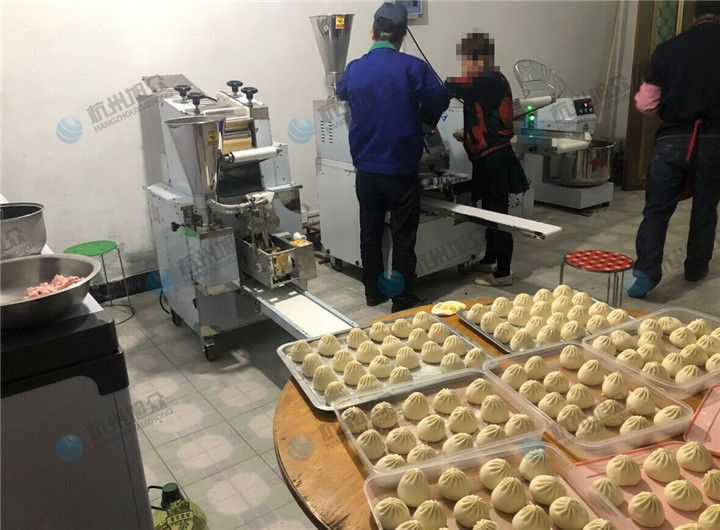 客户带着明确的目的来考察饺子机,结果撞见别的客户在演示包子机,这不看的心动手痒,买了饺子机也不忘顺带把包子机也一块买回家,发货时间大概四五天左右到,这不今天刚好师傅上门调试,食品专区很简单,摆了几样常用的设备:XZ-87全自动包子机、JGB-210仿手工饺子机、和面机、压面机;操作学习的人大概3人左右;那么我们来看看同时拥有包子机饺子机的他们是如何运用的: