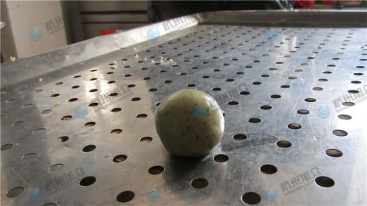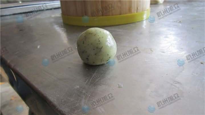做团子如需圆滚滚的外形那么选择汤圆机,汤圆机字面上做搓圆的汤圆,而它不仅仅只是做汤圆,比如:白米果、青团、麻球、叶儿粑等椭圆形状的团子。汤圆机做这类的团子还是比较专业的,这不,客户需要做抹茶团子于是便安排上VFD-4000汤圆机,效果如下图所示:
