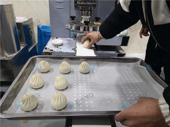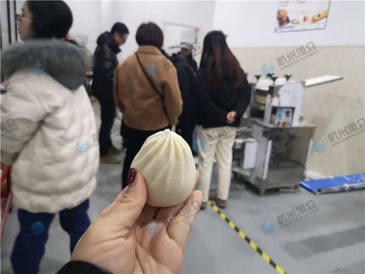 旭众包子机究竟给人们带来了多大的方便?今日来了几波客户来考察包子机设备,印象比较深的就是要做2种不同馅料的客户,提前将蔬菜馅寄过来冷藏,今日终于到达还带了今日刚拌好的肉馅,一个是想看包子机能将两种肉馅和菜馅包合住,再一个包子机效率及外观,但是要用价格实惠花纹十二褶的包子机给他演示效果,于是便安排了SZ-612包子机,一小时1800个成品,十二褶花纹,价格方便也算是包子机中第二优惠,在现场的老板们可以很直观地看到,从和面到做包子全程仅需1-2名师傅便可完成,实际只需一个也可以,只不过多一个人方便快速将成型的包子摆盘好。