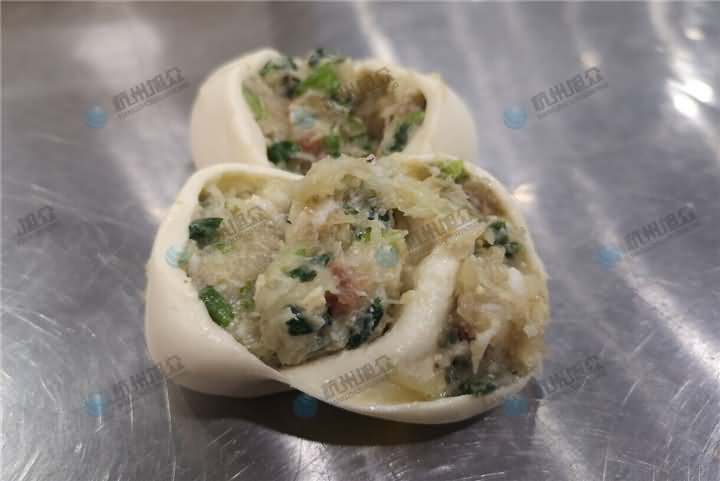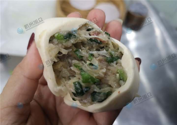 皮薄馅料十足,馅料一看就非常好吃的样子,当然最后蒸出来的样子跟以往做的死皮汤包不一样,因为包子被人工刻意去压扁,就会导致蒸的过程中,有部分位置面皮太厚没有蒸到位,于是客户决定下次再带馅料过来试包子机,因为他认为现在是需要包子机的时候,很多员工回家的回家,请辞的请辞,有这么一台包子机在就不用担心包包子跟不上销量速度!欢迎来电400-885-2117咨询包子机!