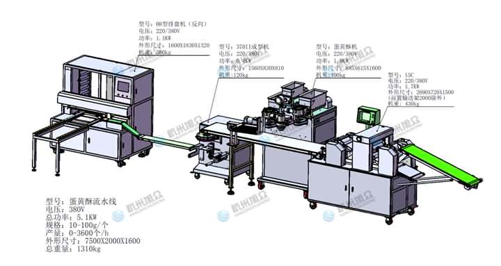 蛋黄酥是由小麦、黄油、蛋黄等做成的传统中式糕点。近年来随着用料的不断升级,蛋黄酥逐渐成为一款网红产品。这么热销的特产自然旭众机械也要插入一脚,通过不断研发生产,终于由酥饼机改装定制成蛋黄酥生产线,那么这一条生产线究竟由什么机器搭配的呢?