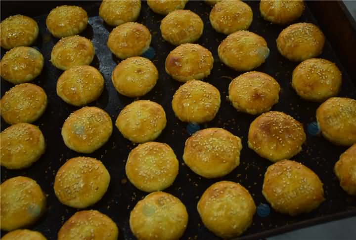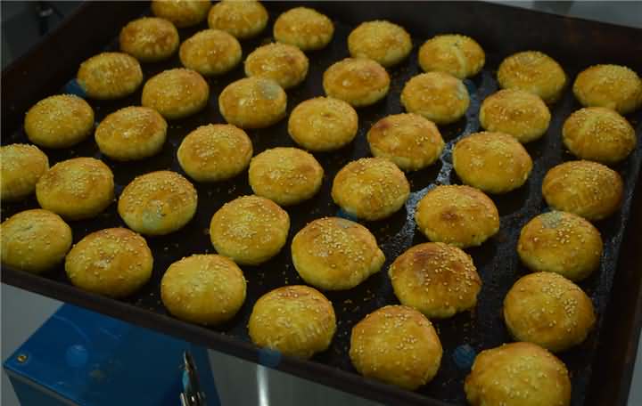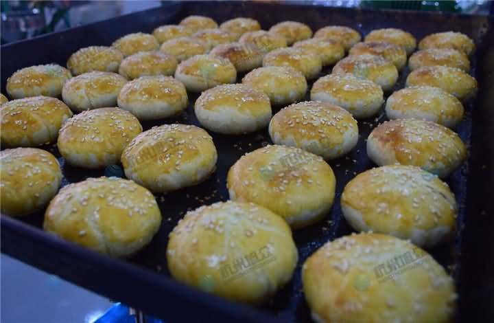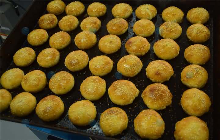 平常做的酥饼可没有这么的黄灿灿,这次是加了蛋黄液和芝麻,看起来更美味,想尝一尝酥饼机做出来的酥饼口感吗?欢迎来电400-885-2117咨询酥饼机设备!