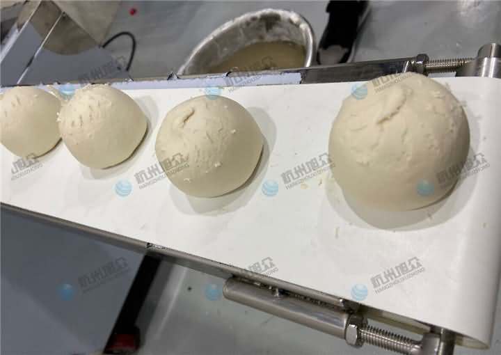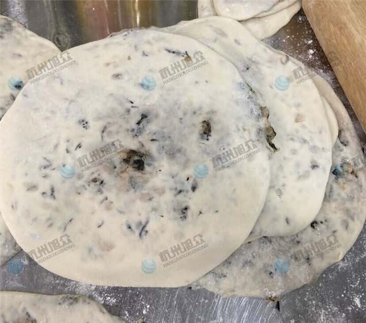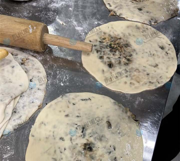 包子机能做缙云烧饼吗?能做也不能做,该怎么说呢,包子机可以等份切成一个个包馅成品后,再人工将它反复擀面压成饼状,有人就觉得到最后反正都是人工来做的,那有必要买包子机吗?这个需不需要包子机看客户需求,客户主要做烧饼的,招了很多员工,有新员工也有老员工,老员工有经验一手就能包出差不多克重的烧饼,而新员工不行,得一边拿克重称着看再反复压饼,于是便想用机器等份的包馅好成型,再让员工一个个去擀压这样效率明显要快很多。于是客户带着自己的烧饼炉及物料来到旭众机械厂: