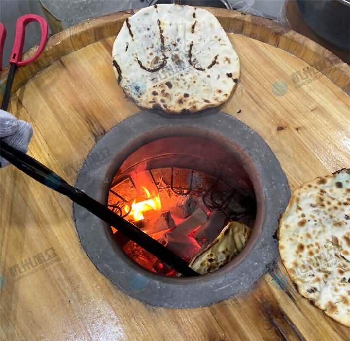 炉子客户自己准备的,烧饼面皮馅料也是客户自己准备带过来,现场用SZ-612包子机制作成型后,再用擀面杖将面团擀成薄饼后拿去烘烤即可,欢迎来电400-885-2117咨询包子机!