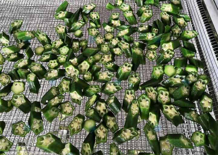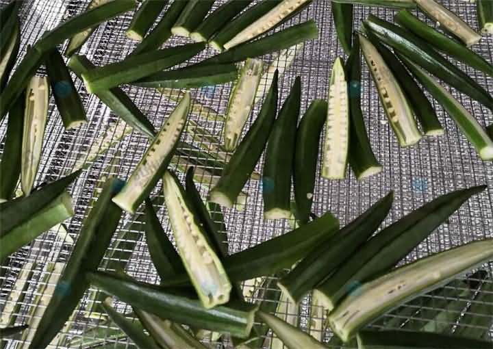 专业烘干机 师傅说如果将秋葵切断,对切的没捞过水的5~6个小时,捞过水的4小时左右,物料较少,具体的还得看物料的厚薄度和数量。