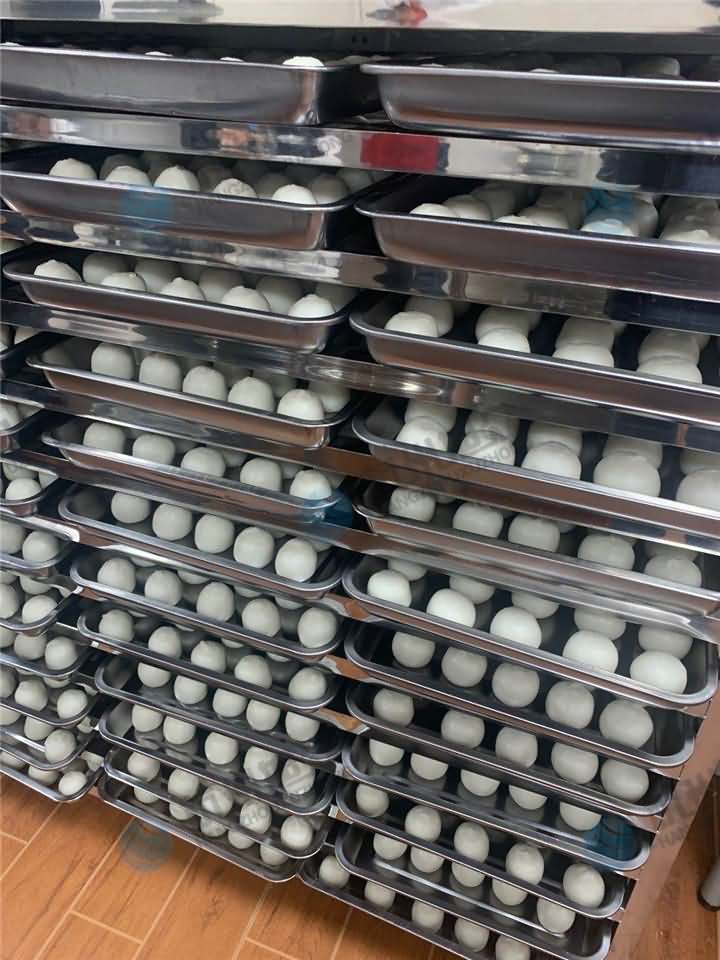 来自富阳的许老板带着员工一起跟着师傅学习操作多功能包馅机,历经几个小时的培训,终于步入员工和老板都能操作包馅机生产熟米粿正轨上,看着一排排的熟米粿,许老板不经感叹到,以往得安排四五个员工花至少也得半小时时间才能做出这么多量,如今只要安排一两人和面拌馅,一人捡盘摆盘放盘便可,效率也是蹭蹭蹭的往上涨,早知如此就该早点买包馅机!