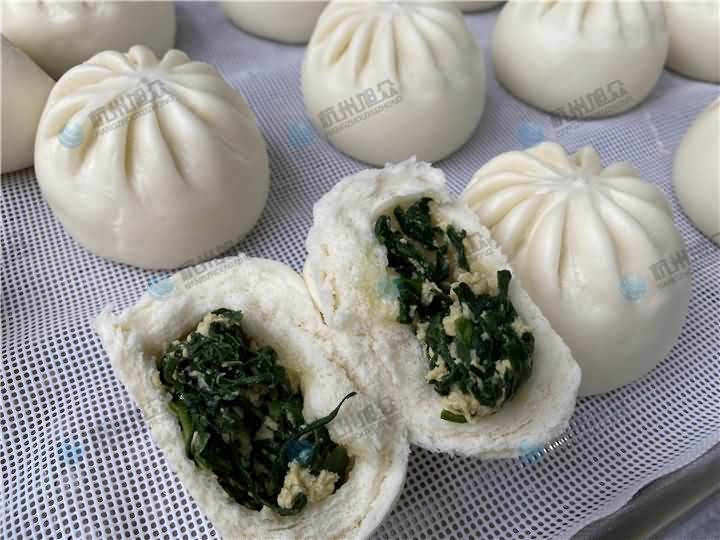 今日份现场操作290AS包子机做100g韭菜鸡蛋馅包子效果: