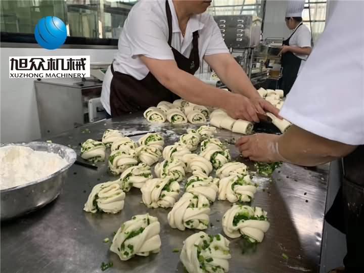 广西某单位食堂使用我们275包子馒头组合机~加长机身定制生产花卷效果杠杠的