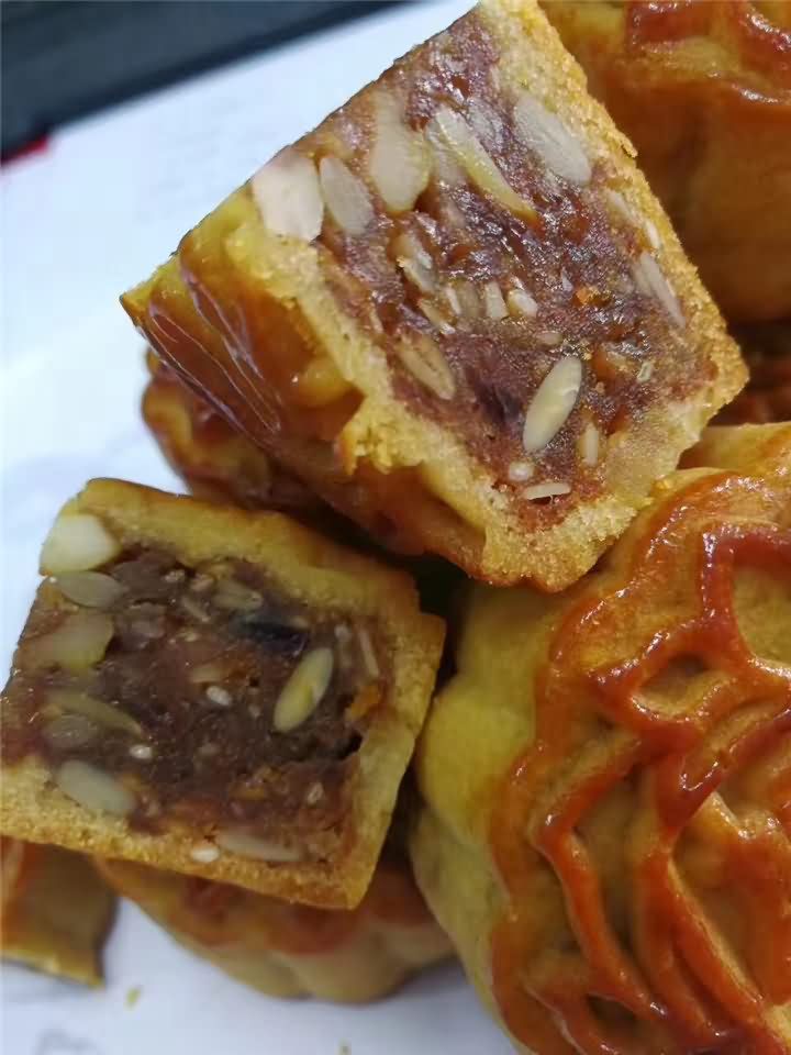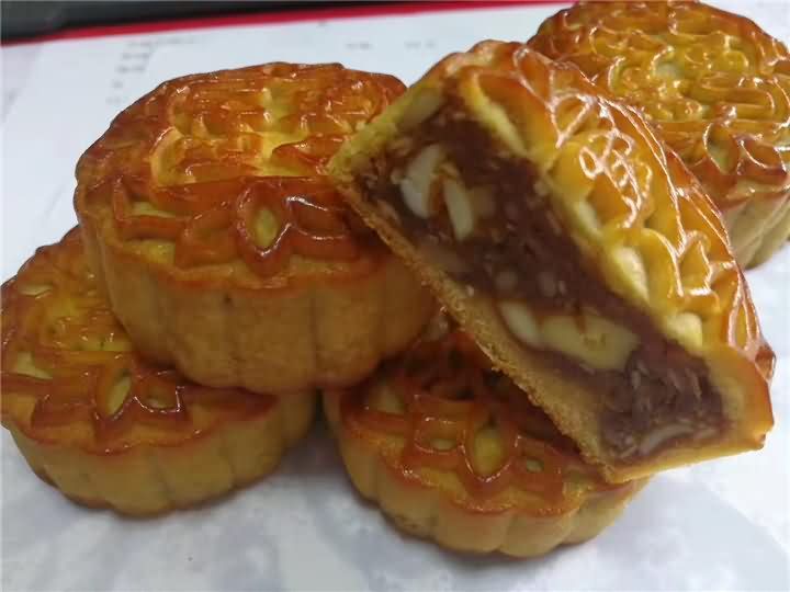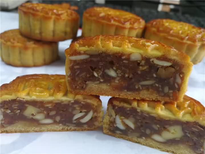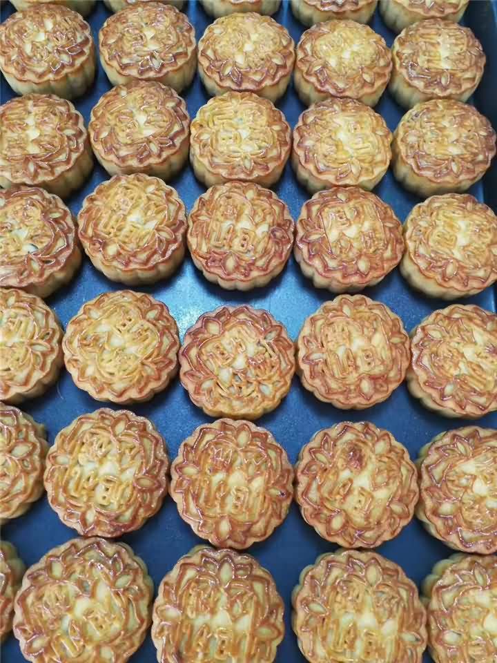 全自动月饼机生产线做的五仁月饼出炉啦!色香味俱全,用机器做的月饼口感不亚于手动做的月饼哦!想要现场品尝月饼机做的月饼吗?欢迎拨打4008852117预约上门考察月饼机。