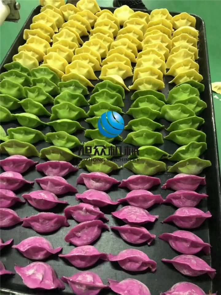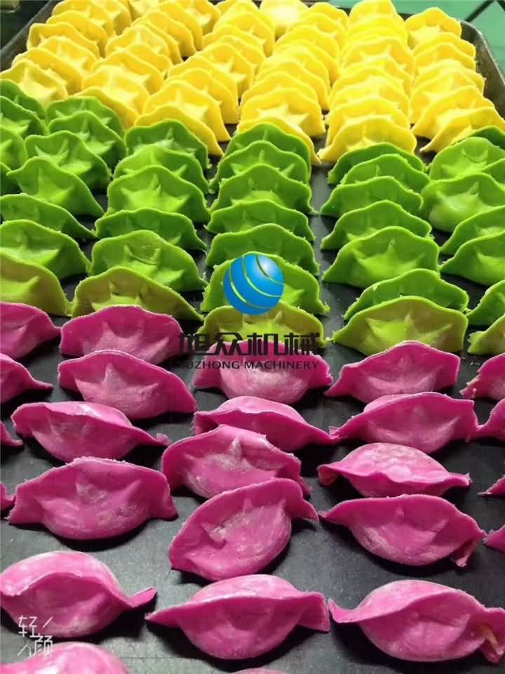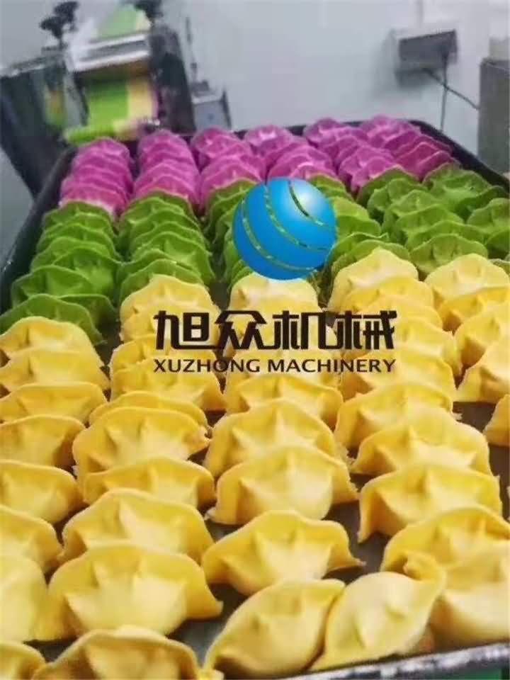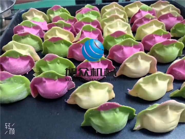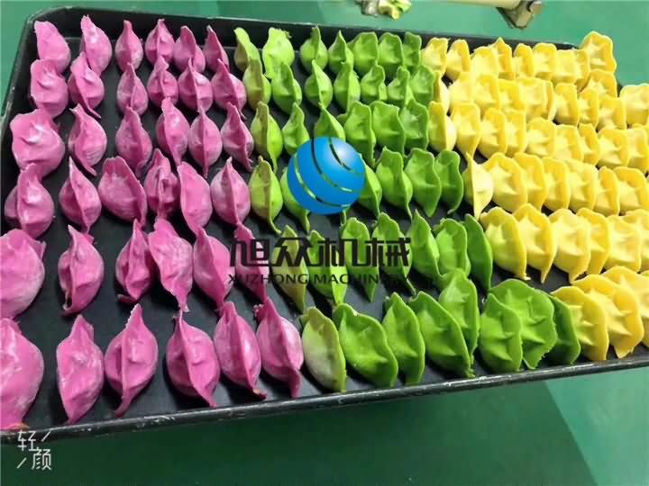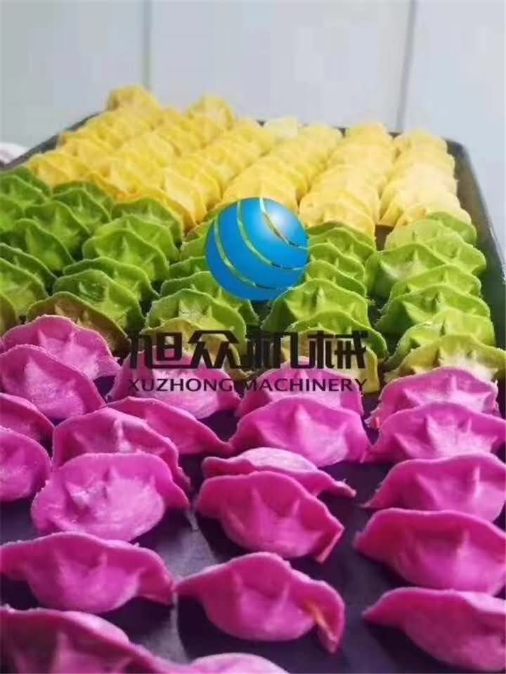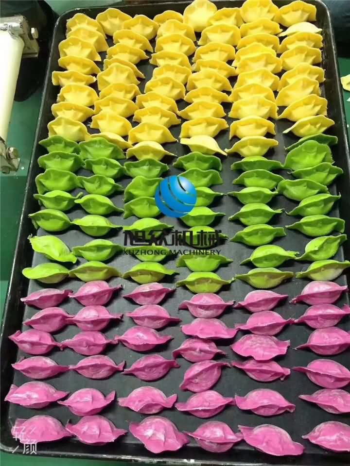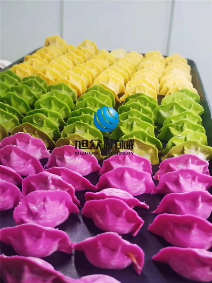今日JGB-210仿手工饺子机做三福饺子咯!用火龙果、菠菜、南瓜分别榨成汁再和面粉搅拌成不同颜色的面团,搅拌好的面团再通过压面机反复压成面皮后,最后通过饺子机自动包馅成型一个个果蔬水饺: