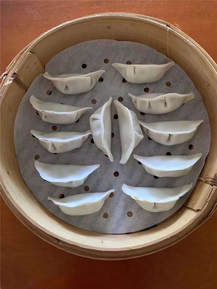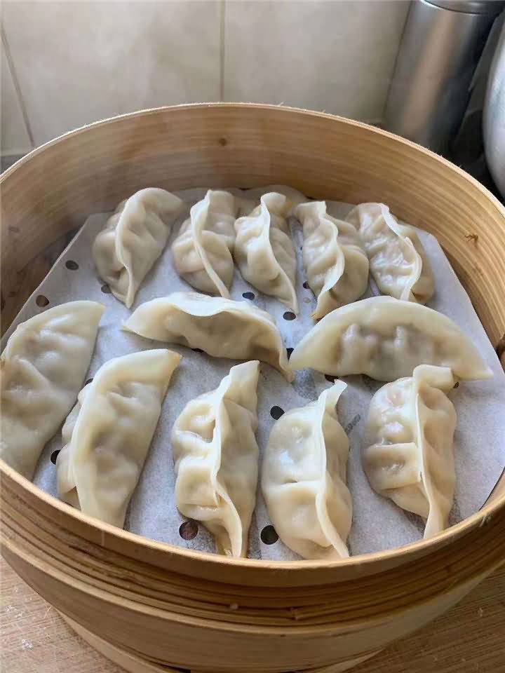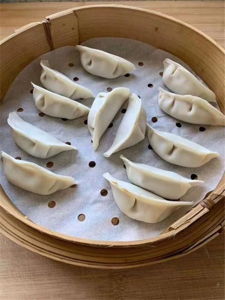 客户一大早就分享用半自动饺子机做的饺子及煎出来的效果!