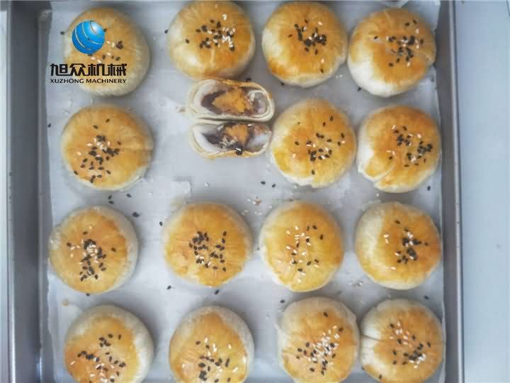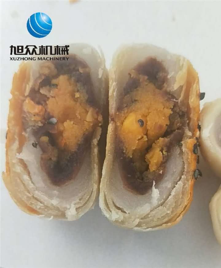 吃过蛋黄酥的都知道里面包的不止一种馅,馅中馅包馅再包馅,多重包馅效果自然只靠一台酥饼机是做不了的,于是便想着用馅中馅自动包馅月饼机搭配酥饼机合力做蛋黄酥,这样月饼机可以充当充馅,酥饼机当面皮,面皮包裹着三种馅料后再切割成型,蛋黄酥就这样完成了!