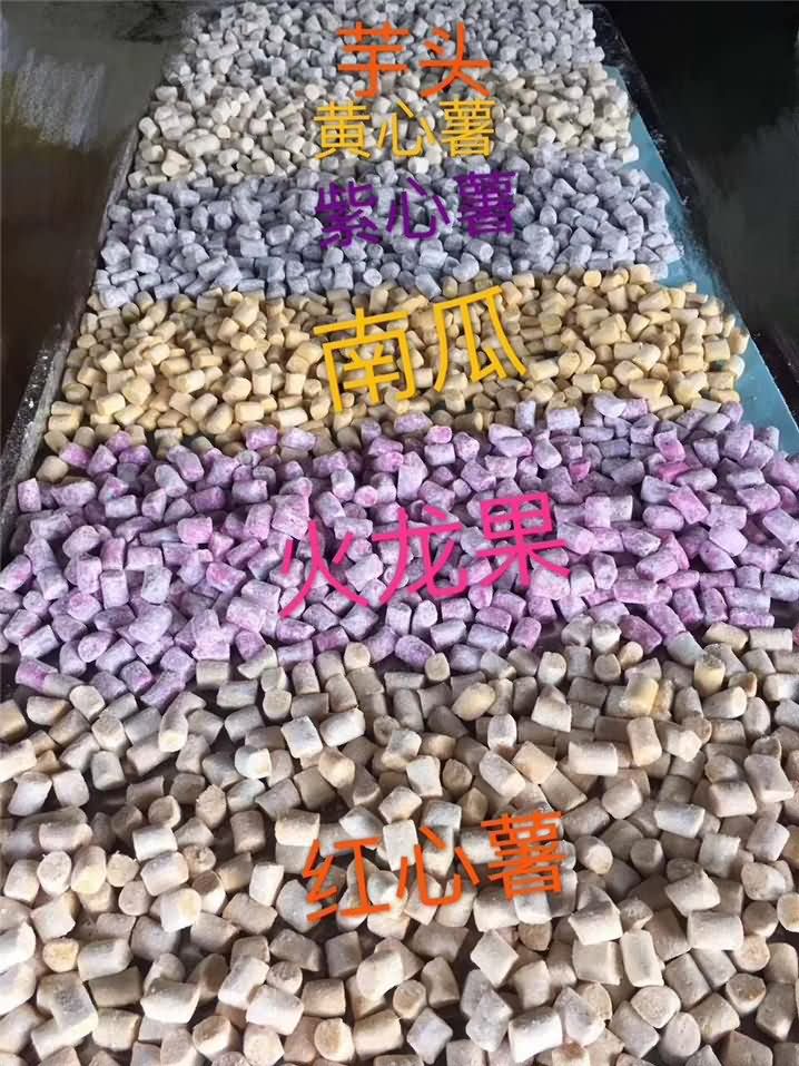 刚定购商用大型XZ-15芋圆机客户跟着师傅学习操作后不久,开始自己操作用芋圆机做起了芋圆,从原来的单一的红薯芋圆发展至现场多种不同口味的芋圆,如:芋头、黄心薯、紫心薯、南瓜、火龙果。能用来做芋圆的杂粮都拿来用芋圆机高效生产,生产出来的成品外观一致,大小相差不过1-2克客户自己能接受,摆放好的杂粮芋圆就像一道彩虹照亮了客户的致富之路!