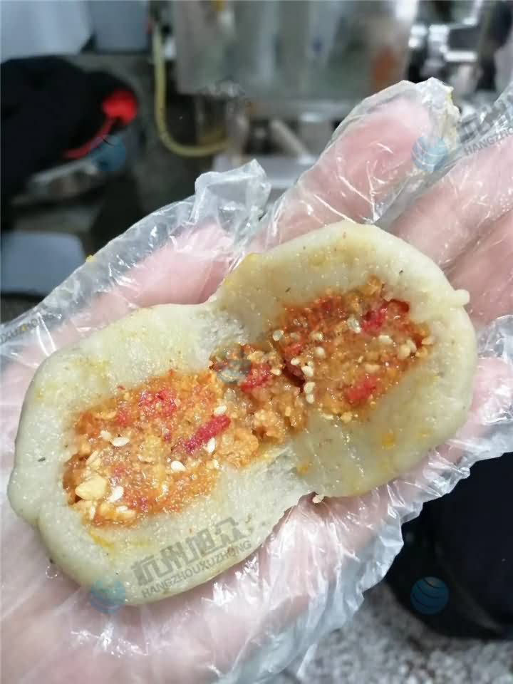 娄底特色团子美味又很养生,客户带着物料来到旭众机械厂,根据他的物料师傅安利99包馅机来生产他所需要的产品,当看到包馅机能完好的将团子一个个大小均匀的生产成型,客户当场就对包馅机心动了。