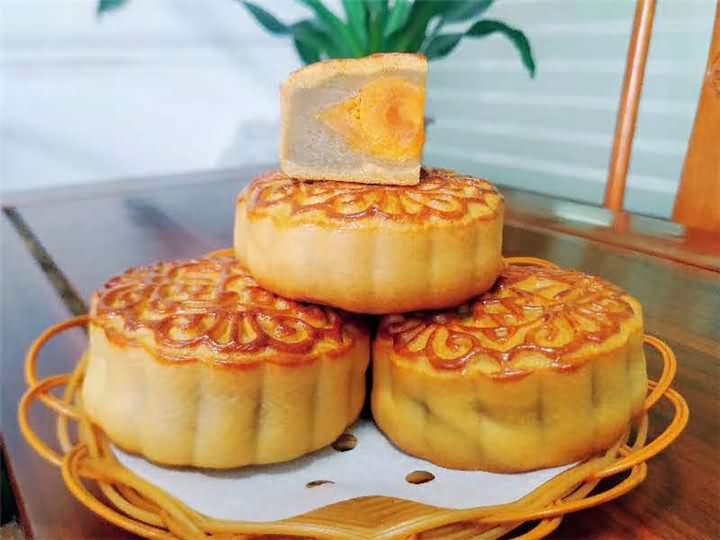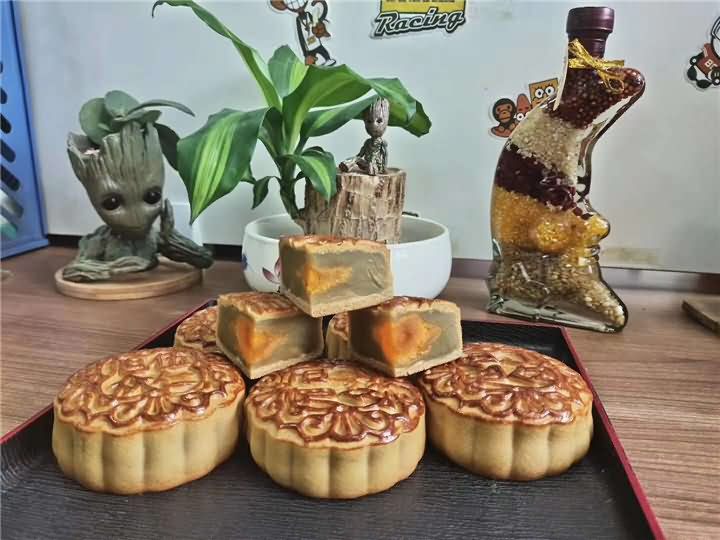 今天来旭众机械工厂学习操作月饼机,采用上乘的莲蓉和蛋黄,味道香浓!