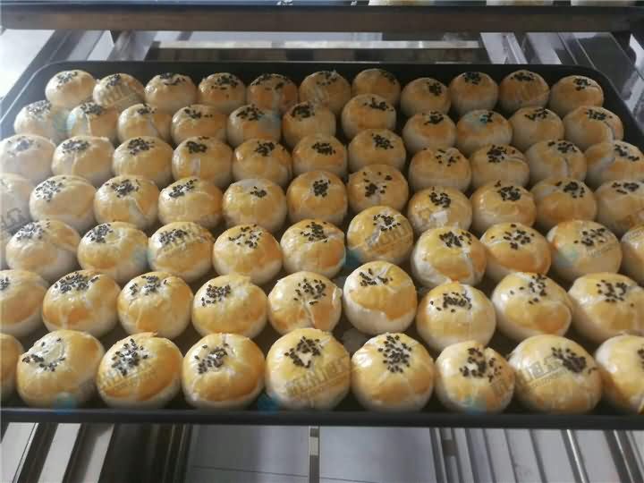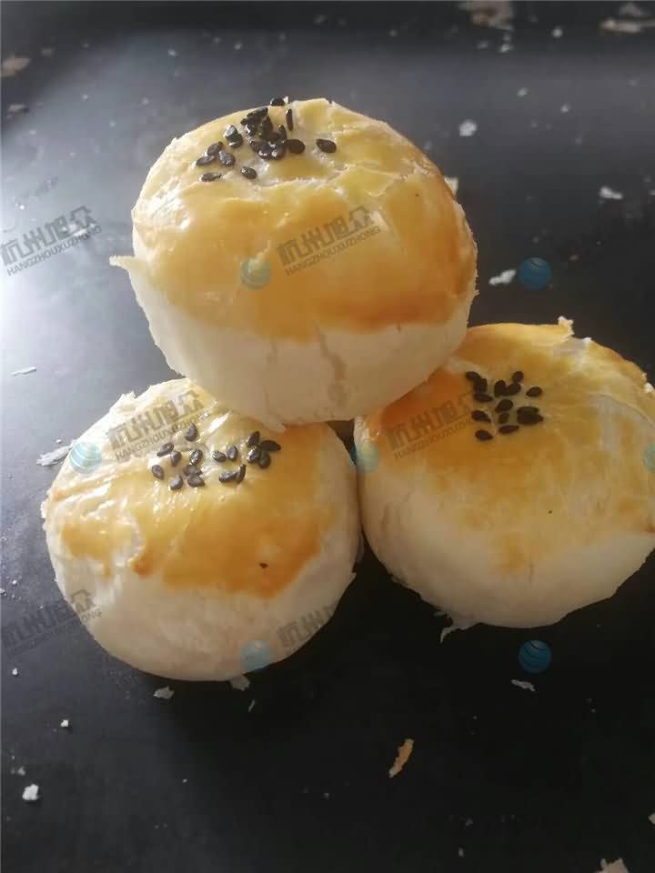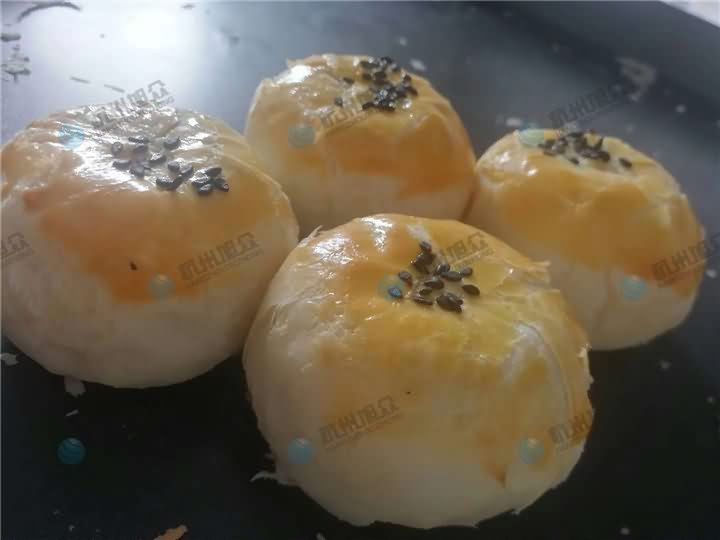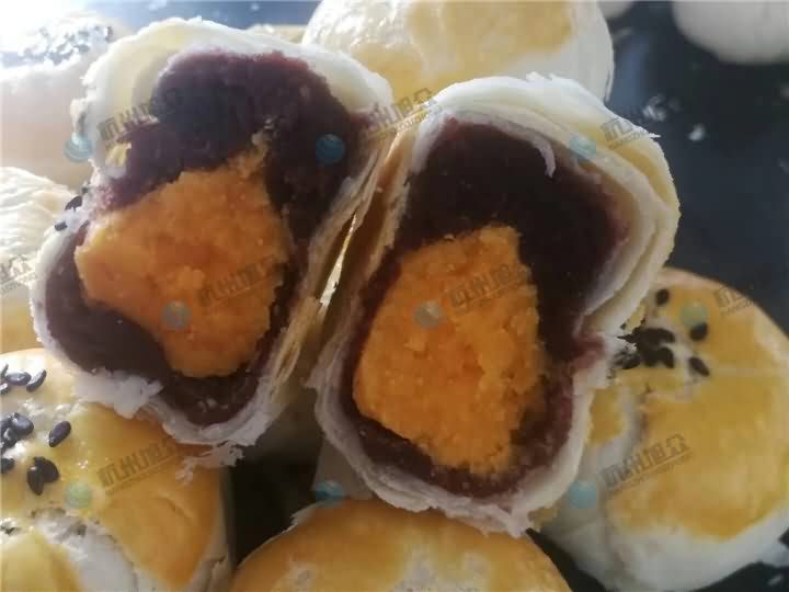 前段时间现场考察做蛋黄酥机器的客户,现在已经正式运用酥饼机来批量生产蛋黄酥,这蛋黄酥比来工厂试机做出来的成品更有诱惑力,光是看图片都能感觉到很好吃的样子,那么我们来看看酥饼机做的蛋黄酥效果: