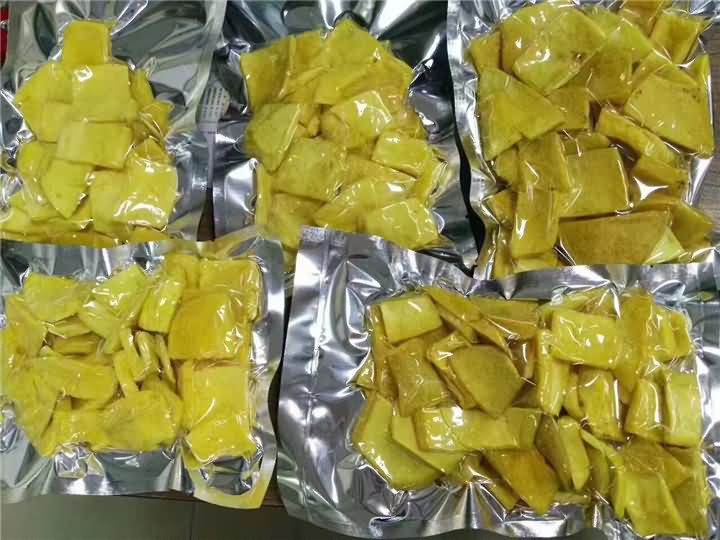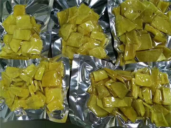 低温真空油炸机油炸:保存了果蔬原有的形、色、香、味,并富含维生素、矿物质、纤维等多种营养成分,具有低糖、低盐、低脂、低热等特征,炸出健康时尚食品!刚炸好的芒果干效果: