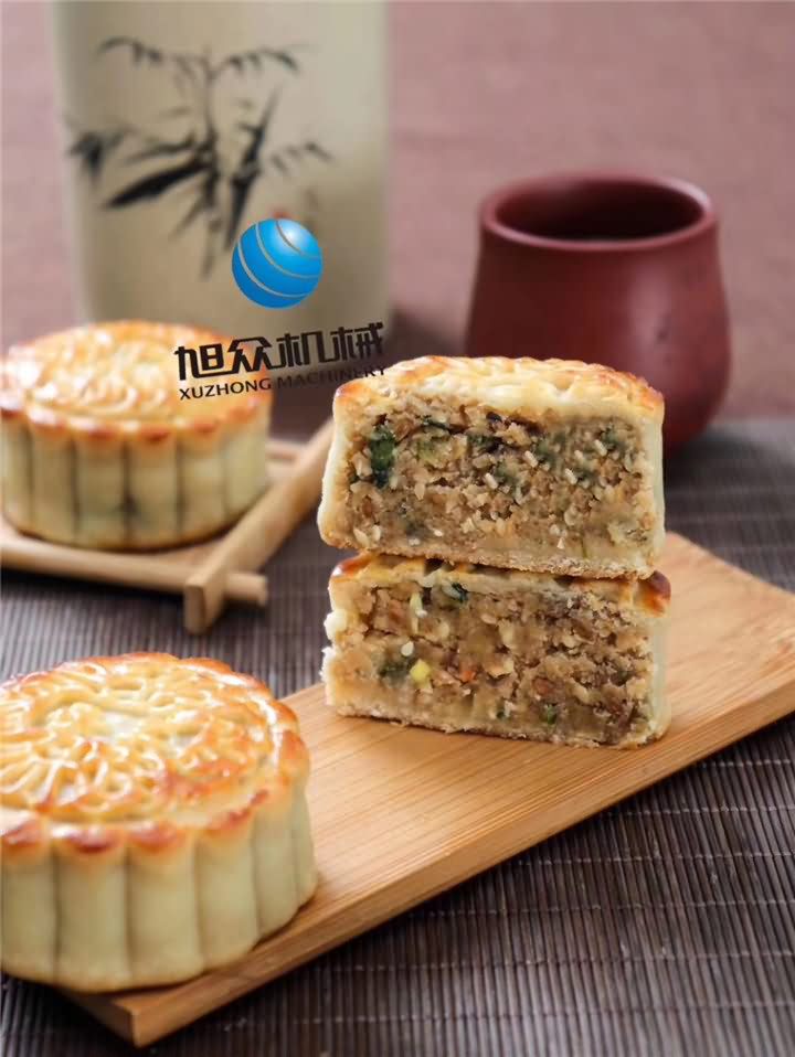 用月饼机生产做了葱油馅的月饼,葱香味的真的很少有哦!